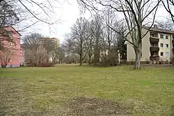 Ein in Ost-West-Richtung verlaufender Grünzug gliedert die Siedlung in einen nördlichen und einen südlichen Bereich. Die Grünfläche endet im Westen am evangelischen Gemeindezentrum. Dort befinden sich die 1959 geweihte Andreaskirche, ein Kindergarten und ein Jugendhaus. Die Gebäude orientieren sich zur Kirchhainer Straße. Der Grünzug mündet im Osten in die Elisabeth-Schwarzhaupt-Anlage, einem in nordsüdlicher Richtung verlaufenden weiteren Grünzug. Ein Wall entlang der Zubringerstraße zur Autobahn 661 schützt Grünanlage und Siedlung vor Verkehrslärm.