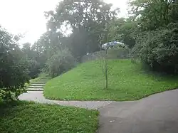 - ↑ Die Umfassungsmauer des Parks ist (ganz oder teilweise?) erhalten, der Landsitz ist abgegangen.