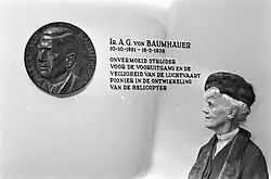 1922 schrieb das britische Ministry of Aviation einen Wettbewerb für die Konstruktion von Hubschraubern aus. Diese sollten über einen vertikalen Aufstieg von 100 Metern Höhe verfügen, eine Fluggeschwindigkeit von 100 km/h erreichen und aus 100 Metern Höhe bei ausgeschaltetem Motor sicher landen können.[1] Als Preis waren 50.000 £ ausgelobt. Der Wettbewerb lief bis zum 1. Mai 1925, später wurde er um ein Jahr verlängert. Von Baumhauer meldete sich im April 1924 zum Wettbewerb an und gründete zu diesem Zweck die Vereeniging De Eerste Nederlandsche Hélicoptère, deren Direktor Pieter Jacobus Six wurde. Der Hubschrauber, der bei Werkspoor in Amsterdam gebaut wurde, war im April 1925 fertig, und die ersten Flüge wurden im September 1925 von Leutnant Floris Albert van Heyst durchgeführt.[3] Am 10. Februar 1926 gelang es van Heyst, die Maschine fünf Minuten lang einige Meter über dem Boden zu halten; der Höhenrekord für Hubschrauber lag damals bei fünf Metern.[1] Für seine von ihm konstruierte Flugsteuerung erteilte das britische Ministerium von Baumhauer das Patent Nr. 265.272.[3]