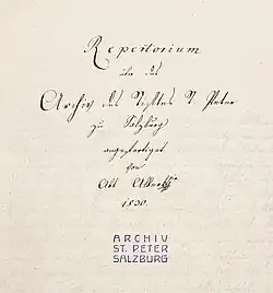 - ↑ Personal-Nachrichten. – Salzburg.. In: Salzburger Kirchenblatt / Salzburger Kirchenblatt. Neue Folge / Katholische Kirchenzeitung vormals („)Salzburger Kirchenblatt(“) / Klerus-Blatt vormals Katholische Kirchenzeitung, 19. Jänner 1854, S. 8 (online bei ANNO)., abgerufen am 1. Februar 2020