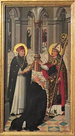Eine Vision Alberts wurde für den Heiligsprechungs-Prozess des Thomas ab 1319 und in der Thomas-Ikonographie bedeutsam. Darin war ihm Thomas mit einem kostbaren Edelstein auf der Brust und im vertrauten Gespräch mit dem Kirchenvater Augustinus von Hippo erschienen. Die Vision zeigte, dass „die beiden Lehrer Thomas und Augustinus die gleiche Stufe der himmlische Glorie besitzen“[2]; sie galt als Beglaubigung der Übereinstimmung der Lehre des Thomas mit der Tradition der Kirche.
