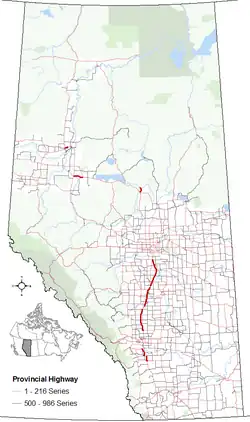 Der Alberta Highway 2A ist keine durchgehende Strecke, sondern eine Gruppe von mehreren verschiedenen Ausweichstrecken zum Alberta Highway 2.[1]