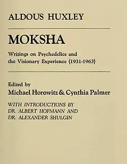 Moksha: Writings on Psychedelics and the Visionary Experience (1931–1963), 1977 - Moksha. Aldous Huxley’s Classic Writings on Psychedelics and the Visionary Experience, Park Street Press, Rochester, Vt. 1999, ISBN 0-89281-758-5.