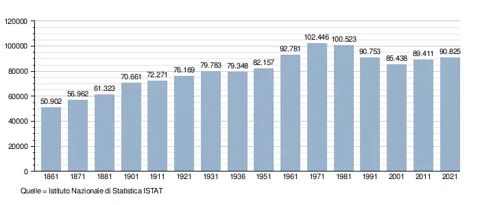 - ↑ Bilancio demografico e popolazione residente per sesso al 31 dicembre 2024. ISTAT. (Bevölkerungsstatistiken des Istituto Nazionale di Statistica, Stand 31. Dezember 2024).