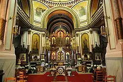 Der Tambour der Pendentifkuppel ruht im Inneren auf vier massiven Pfeilern mit zum Kuppelraum hin einwärts gewölbten Stirnseiten. Die reiche plastische Gliederung des Außenbaus setzt sich im Inneren in Form von kräftigen Gesimsen, Friesbändern und Ecksäulchen fort, zusätzlich aufgewertet durch die starkfarbige Raumfassung (Ausführung Jungnickel & Nordbruch, Łódź). Die zweirangige Ikonostase wurde nach einem Entwurf des Architekten Majewski bei Camilli in Sankt Petersburg angefertigt, die zugehörigen Ikonen stammen aus der Hand von Wassili Wassiljewitsch Wassiljew. Die Beflurung aus farbigen Tonfliesen stammt von Villeroy & Boch, Mettlach, die Glasmalereien im Chor von A. Zeiler, Breslau. Des Weiteren sind einige Prozessionsstandarten aus Metall erhalten.