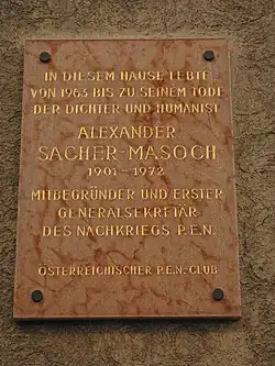 Sacher-Masoch wurde auf dem Grinzinger Friedhof (Gruppe 20, Reihe 5, Nummer 16) in einem ehrenhalber gewidmeten Grab bestattet. Seine Witwe stiftete 1994 zu seinem Andenken einen Literaturpreis, den nach ihm benannten Alexander-Sacher-Masoch-Preis.