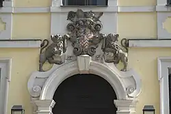 Wappen des Fürstbischofs am Portal der Studienbibliothek Dillingen