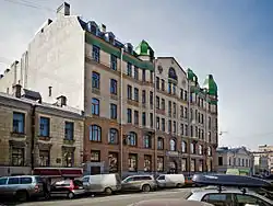 - ↑ Um den Greifenturm in der Apotheke ranken sich in Sankt Petersburg lokale Legenden, in denen von Alchemisten die Rede ist. Die Apotheke heißt unter den Sankt Petersburgern Andrewskaja Apotheke, da sie nahe Andrejewski Kathedrale ist