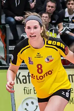 - ↑ Andie Malloy – VfB holt weitere Außenangreiferin. VfB Suhl, 24. Juli 2017, archiviert vom (nicht mehr online verfügbar) am 18. Oktober 2017; abgerufen am 19. Dezember 2017. Info: Der Archivlink wurde automatisch eingesetzt und noch nicht geprüft. Bitte prüfe Original- und Archivlink gemäß Anleitung und entferne dann diesen Hinweis.