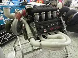 - ↑ Bei einem Ladedruck von 3,0 bar betrug die Motorleistung 670 PS. Vgl. Hodges: Rennwagen von A–Z nach 1945. 1994, S. 14.