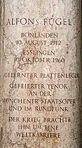 - Fridhardt Pascher: Alfons Fügel – der Tenor von den Fildern. In: Schwäbische Heimat. Bd. 58 (2007), Nr. 1, S. 58–62 (https://doi.org/10.53458/sh.v58i1.3798).