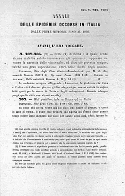 - Annali delle epidemie in Italia dalle prime memorie sino al 1850; Bologna 1865 bis 86, 7 Bände