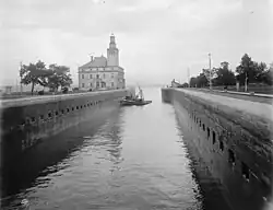 - ↑ Soo Locks History. U.S. Army Corps of Engineers, Detroit District. Abgerufen am 2. August 2017.