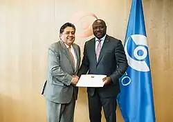 | 24. Oktober 2013: Gustavo Meza-Cuadra Velásquez[3] | Ständiger Vertreter der peruanischen Regierung bei der UNO in Wien. 3. Dezember 2015 bis 7. Dezember 2015 | 3. November 2016: Juan Fernando Javier Rojas Samanez[4] |