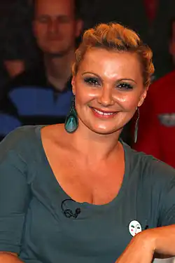 - ↑ Die „Big Brother“-Moderatorin ist zum ersten Mal Mama geworden – mit 40! In: bunte.de. 21. Mai 2018, abgerufen am 25. März 2025.