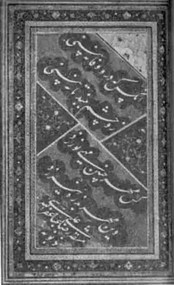 - ↑ Mohammad Naghshi Tabrizi: Hayāt e Alireza Abbassi, Xošnevis e maruf e dore ye Safaviye (Das Leben von Alireza Abbassi, der berühmter Kalligraf der Safawiden-Ära). In: Honar o Mardom(Kunst und Leute). Band 2, Nr. 20, 1964, S. 30–31.