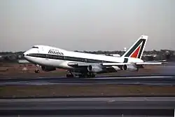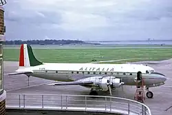 Auf die italienisch-amerikanische Gründung der Linee Aeree Italiane folgte am 16. September 1946 die Gründung der italienisch-britischen Aerolinee Italiane Internazionali, kurz Alitalia.[10] British European Airways hielt 40 Prozent des Startkapitals, das italienische Regierungsinstitut IRI 47,5 Prozent, die restlichen 12,5 Prozent gingen an private Investoren. Am 5. Mai 1947 nahm Alitalia mit einer Fiat G.12 auf der Strecke TurinRomCatania den Flugbetrieb auf. Am 6. Juli 1947 führte eine Savoia-Marchetti SM.95 den ersten internationalen Flug der Alitalia von Rom-Ciampino nach Oslo durch. Am 26. Mai 1948 erfolgte mit einer Avro Lancastrian der erste Transatlantikflug von Mailand über Rom, Dakar, Natal, Rio de Janeiro und São Paulo nach Buenos Aires. In den folgenden Jahren setzte Alitalia auch Flugzeuge der Typen Douglas DC-4, DC-6, Convair CV-340 und CV-440 ein.[11]