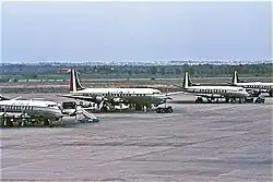 Eine Douglas DC-7C und 3 Vickers Viscount der Alitalia, Rom 1965