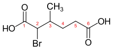 | Trivialname | Chloressigsäure | Glycolsäure | Glycin | α-Brom-β-methyladipinsäure |