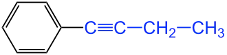 1-Butin-1-ylbenzol. Die 1-Butin-1-ylgruppe ist blau markiert. |