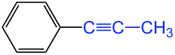 1-Propinylgruppe in 1-Propinylbenzol. Die 1-Propinylgruppe ist blau markiert. |
