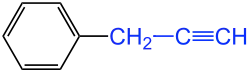 3-Propinylgruppe (Propargylgruppe) in 3-Propinylbenzol. Die Propargylgruppe ist blau markiert. |