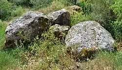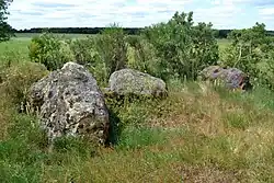 Die Reste dieses Galeriegrabes bestehen aus fünf Sandsteinblöcken mit einer maximalen Höhe von 1,0 m. 1887 gab es einen weiteren Block in Form einer rechteckigen Platte mit einer Höhe von etwa 1,5 m. 1953 wurde eine etwa zwei Meter hohe Quaderplatte entfernt und an den Calvaire von Sion-les-Mines verlegt. Es handelt sich um den am Kalvarienberg neben einem anderen versetzten Block errichteten Menhir.