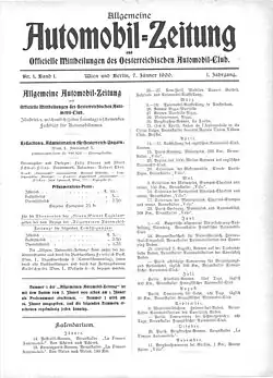 Die Allgemeine Automobil-Zeitung (AAZ) war eine ab dem Jahr 1900 bis vermutlich 1938 wöchentlich erscheinende Zeitschrift mit Redaktionssitz in Wien. Bis 1901 war der Hauptsachtitel Allgemeine Automobil-Zeitung und officielle Mittheilungen des Oesterreichischen Automobil-Club. Ab dem Erstausgabejahr erschien das von Adolf Schmal gegründete[1] Blatt jedoch auch in Berlin[2] als deutsche Ausgabe, vertrieben durch den Verleger Gustav Braunbeck, bis dieser die deutsche Ausgabe ab 1904 selbst übernahm.[1]