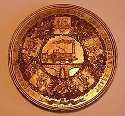 Am 15. August 1844 eröffnete im Berliner Zeughaus der preußische Finanzminister Eduard von Flottwell[2] im Beisein der übrigen Minister die von allen Staaten des Deutschen Zollvereins beschickte gut zweimonatige Gewerbeausstellung.[3] Die Berliner Gewerbeausstellung war eine Leistungsschau der deutschen Wirtschaft mit den Waren von 3040 Handwerkern und Fabrikanten. Landwirtschaftliche Geräte, Textilwaren, Möbel, Porzellan, Chemie, Medizintechnik, Klingen und Messer aus Solinger Stahl, Hinterladergewehre mit gezogenem Lauf aus Suhl und vieles mehr zeigten den Weg hin zur Serienherstellung von Waren in Fabriken statt der teueren Fertigung in Handwerksbetrieben und Manufakturen an, und auch der Fortschritt in der Technologie wurde offensichtlich.
