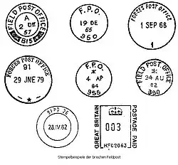 1950 finden wir eine Definition der Aufgaben der Armeepostämter (APO's). Dort werden Postsendungen von Alliierten angenommen und der Deutschen Post zur Beförderung übergeben, die an zivile Empfänger in Deutschland gerichtet sind. Die in britischen APO's eingelieferten Sendungen sind entweder mit dem gebührenbefreiend Vermerk „On His Majesty's Service“ versehen oder mit britischen Postwertzeichen nach besonderen (niedriger als für Sendungen aus Großbritannien) Gebührensätzen freigemacht. Sie sind erkennbar an den Tagesstempeln mit der Bezeichnung „Field Post Office“ oder vereinzelt „Zone Postal Depot“. Sie dürfen nicht mit Nachgebühr belegt werden. Bei den amerikanischen, französischen und belgischen APO's bzw. BPM (Bureau Postal Militaire) eingelieferten Sendungen sind so freigemacht, dass eine Belastung mit Nachgebühr nicht in Frage kommt.
