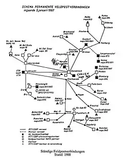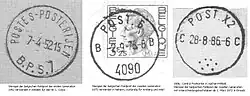 Austauschpunkte 1960: Aachen, daneben durften die belgischen Streitkräfte an Orten mit belgischen Militärpostämtern gewöhnliche Inlandssendungen formlos den Dienststellen der DBP übergeben. - 9. Dezember 1969, Austausch in Aachen, Kassel und Neheim-Hüsten und nun auch beim PA Siegen/Westf. Stand 86 5000 Köln, 5100 Aachen, 5900 Siegen 1