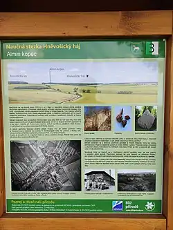 Der Almin kopec wird im Norden, Süden und Westen von Ackerflächen umgeben; nach Osten und Südosten erstreckt sich der Hněvošický háj. Über die Kuppe führt der über dreieinhalb Kilometer – zumeist am Waldrand am Rande des Naturreservats verlaufende – Lehrpfad Hněvošický háj. Neben einem Rastplatz des Lehrpfades mit Schautafel befinden sich auf der Kuppe lediglich ein topographischer Punkt und ein Ansitz.