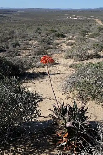 Aloe arenicola in den südafrikanischen Provinzen Nordkap und Westkap auf sandigen Küstenebenen verbreitet.