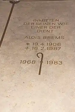 Alois Brems starb am 16. Februar 1987 im Alter von 80 Jahren. Sein Grab befindet sich im Dom zu Eichstätt.