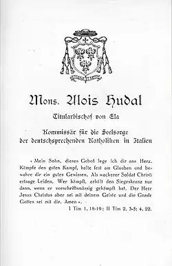 - ↑ Alois C. Hudal: Römische Tagebücher – Lebensbeichte eines alten Bischofs. Leopold Stocker Verlag, Graz/Stuttgart 1976, ISBN 3-7020-0242-1, S. 239.