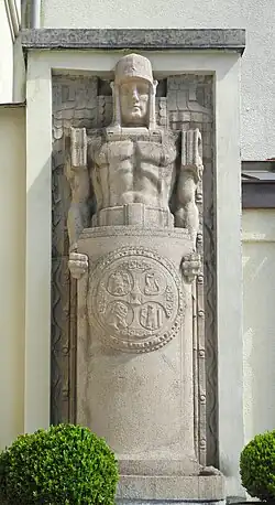 - Wächterstatuen am Krematorium in Reichenberg (1917)