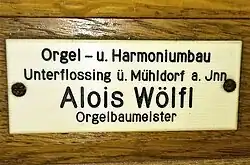 Alois Wölfl lernte das Orgelbauerhandwerk bei Georg Glatzl in Mühldorf. Er machte sich 1938 selbständig und verlegte 1947/1948 seinen Firmensitz nach Unterflossing.[1]