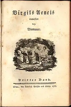 Ganz im Sinne der Reformen des aufgeklärten Monarchen Kaiser Josef II. trat Blumauer in seiner Aeneis gegen die weltliche Macht der Kirche auf und forderte deren Erneuerung. Viele Anachronismen und Anspielungen auf damalige österreichische Zustände sind in dem Werk zu finden. Goethe soll sich, aber erst nach dem Tode Blumauers, über dessen Aeneis sehr abfällig geäußert haben, was auch daran liegen mag, dass Blumauer sich mit Goethe insofern anlegte, wie er dessen Werther in der Hölle den Richtern vorführen lässt, die ihn dann dem Teufel übergeben: