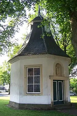 Es handelt sich um einen achteckigen Zentralbau mit einer äußeren Kantenlänge der Seiten von ca. 2,60 m und ca. 22 m² Grundfläche, nicht geostet, sondern mit Altarwand auf der Nordwestseite dem Portal gegenüber. Gestiftet wurde sie aus privatem Vermögen der Äbtissin Antonetta Isabella Josina von Nagel zu Vornholz. Das Äußere des verputzten Baues wird von dem Portal, über dem in einer rundbogigen Nische der Kapellenpatron steht, und vier Rechteckfenstern mit sandsteinfarbener Laibung gegliedert.