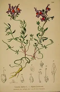 - ↑ a b Karol Marhold: Scrophulariaceae. Linaria alpina In: Euro+Med Plantbase - the information resource for Euro-Mediterranean plant diversity. Berlin 2011.