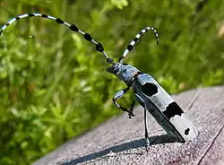 Der Alpenbock (Rosalia alpina) ist ein Käfer aus der Familie der Bockkäfer (Cerambycidae).[1] Durch seinen Schutz auf europäischer Ebene ist der Alpenbock in allgemeineres Interesse gerückt. Sein Bild erscheint in verschiedenen Ländern auf Briefmarken und als Logo von Zeitschriften und Naturparks.[2]