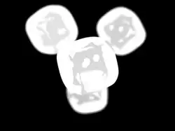 Darstellung des in der Bilddatei gespeicherten direkten Alphakanals. Hellere Bereiche sind undurchsichtiger, dunklere durchsichtiger.