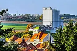 Ein wichtiger Industriebetrieb ist die Mühle, die im Umland angebautes Getreide verarbeitet. Die Tradition der Mühlen in Alsleben reicht bis ins Mittelalter zurück.[23] Ab 1212 befand sie sich im Besitz des Klosters „Zum neuen Werk“ in Halle (Saale). 1479 wurde sie durch die Herren von Krosigk als Inhaber der Grafschaft Alsleben übernommen. Sie ersetzten die Alte Mühle 1724 durch einen Neubau.