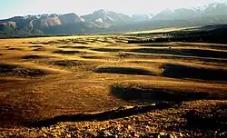 Das Altai-Gebirge liegt an der Grenze von Russland, Kasachstan, der Volksrepublik China und der Mongolei. Am Ende der letzten Eiszeit bildeten sich mit der Erwärmung der Erde große Eisstauseen. Beim Versagen der die Eisstauseen umgebenden Eisdämme kam es zu katastrophalen Überflutungen. Insgesamt soll es drei Megafluten im Altai gegeben haben, von denen die letzte wahrscheinlich die größte war.[1] Diese Überflutung wurde von zwei miteinander verbundenen Seen verursacht und ist als Altai-Flut bekannt.[2]