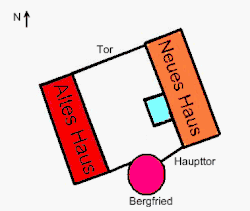 Die Alte Burg ist eine Randhausburg. Die Grundform ist, wie bei deutschen Burgen typisch, rechteckig und hat die Maße von zirka 50 × 35 Metern. Die Burganlage besteht aus dem Alten Haus, dem Neuen Haus, der Ringmauer mit Toren und Wehrgängen sowie dem Bergfried.