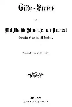 Im Jahre 1819 wurde die Brand- und Kirchengilde von 1560 durch sechs Schönkirchener Hufenbesitzer in eine Windgilde für Schönkirchen und Umgegend umgewandelt, die den versicherten Hausbesitzern Unterstützung bei Sturmschäden bieten sollte. Das Gebiet dieser Gilde erstreckte sich nach dem Statut über die Kirchspiele Schönkirchen, Schönberg, Probsteierhagen und Elmschenhagen, reichte aber später auch weiter darüber hinaus.