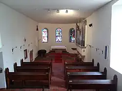 Statt der einstigen vierseitigen Holzempore befindet sich an der Westseite eine Empore aus Beton. Der östliche Chorbereich ist um eine Stufe erhöht, der Altarbereich um zwei weitere Stufen. An der Südseite des Chors steht die Orgel hinter einem Freipfeifenprospekt. An den beiden Eingängen befinden sich kleine Weihwasserbecken, die Ende der 1950er Jahre angebracht wurden, als die katholische Gemeinde die Kirche umgestaltete. Das holzsichtige Gestühl mit geschnitzten Wangen wurde aus der Johann-Sebastian-Bach-Kirche (Arnstadt) übernommen. Die 26 Bänke wurden im Jahr in der Breite eingekürzt, in Eigenleistung aufgearbeitet und 2008 in die Kirche gestellt, sodass ein Mittelgang frei bleibt.