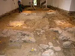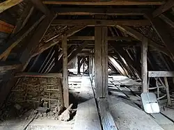Bis 1658 hatte die Decke einem profilierten Unterzug in der Mitte, der von Holzpfosten gestützt wurde. Der Balken trägt heute als Überzug auf dem Dachboden des Ostteils das Gebälk von 1658. Auf der westlichen Seite ist das gotische Dachwerk von 1489/90 erhalten.[15]