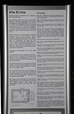 Fundamentreste unter der Westmauer und Steinlagen unter dem Fundament der Nordwest-Ecke deuten darauf hin, dass die Kirche auf den Fundamenten eines noch älteren Bauwerkes (Holzkirche?) errichtet wurde.[6]