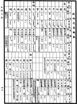- Tabelle chinesischer Maßeinheiten verschiedener Dynastien